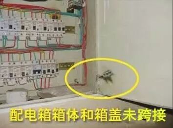 排查依据:GB 50303-2002《建筑电气工程施工质量验收规范》6.1.1 柜、屏、台、箱、盘的金属框架及基础型钢必须接地(PE)或接零(PEN)可靠;装有电器的可开启门,门和框架的接地端子间应用裸编制铜线连接,且有标识。