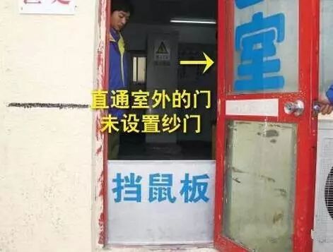 排查依据:DB 11527-2008《变配电室安全管理规范》5.8.2 通往室外的门应装有纱门且门上应装设雨罩。