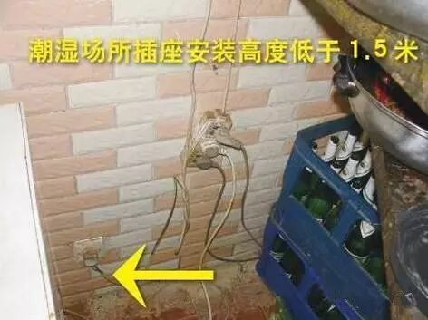 排查依据:GB 50303-2002《建筑电气工程施工质量验收规范》22.1.3 潮湿场所采用密封并带保护地线触头的保护型插座,安装高度不低于1.5m。