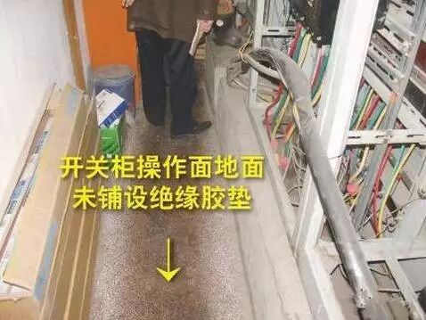 排查依据:DB 11627-2008《变配电室安全管理规范》5.3 变配电室变压器、高压开关柜、低压开关柜操作面地面应铺设绝缘胶垫。