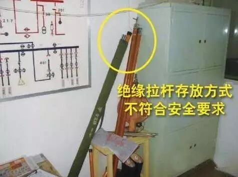 排查依据:DB 11527-2008《变配电室安全管理规范》5.18.5 绝缘拉杆应悬挂或架在支架上,不应与墙接触。