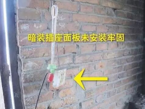 排查依据:GB 50303-2002《建筑电气工程施工质量验收规范》22.2.1 暗装的插座面板紧贴墙面,四周无缝隙,安装牢固,表面光滑整洁、无碎裂、划伤,装饰帽齐全。