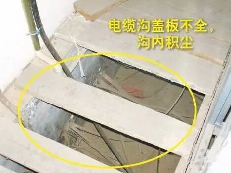 排查依据:DB 11527-2008《变配电室安全管理规范》6.8.3 电缆沟盖板齐全,沟内干净。