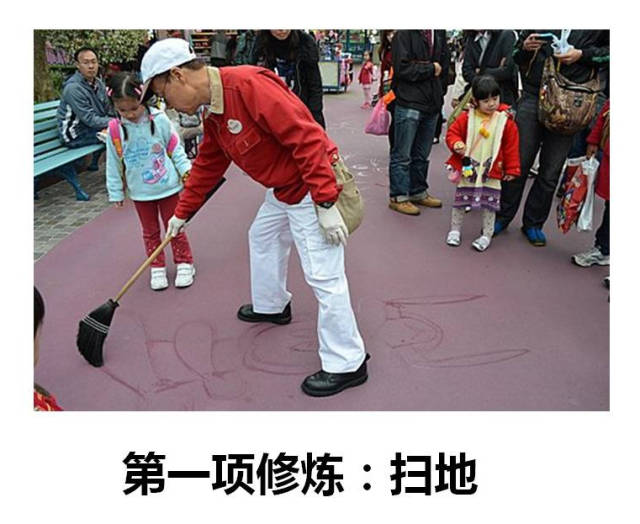 这项比较好理解,这是清洁工的基本任务。不过迪士尼的要求却非常高,就连扫地的扫帚都分为三种: