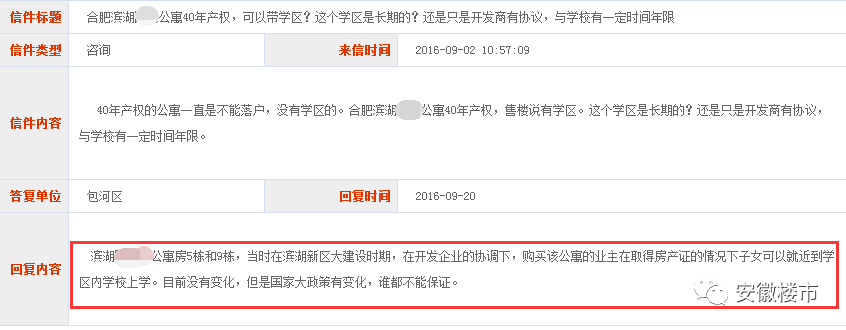 但是也有例外,从合肥市12345政府服务直通车的网友咨询来看,滨湖某40年产权公寓,在开发企业的协调下,购买该公寓的业主在取得房产证的情况下子女可以就近到学区内学校上学。但是,官方也明确表示,国家大政策有变化,谁也不能保证!