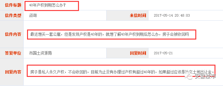 不过从目前来看,这一问题也得到了官方回复。对于40年产权到期问题,合肥市国土资源局表示:房子是私人永久产权,不会收回的,目前为止还没有办理过产权有超过40年的,如果超过应该是补交土地出让金。